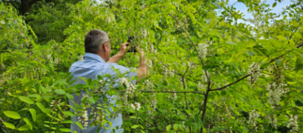 Stefan Mandl leitet eine Bioimkerei mit rund 12.000 Bienenvölkern. Bevor er sich in das Projekt „Bienenwald“ stürzte, hatte er bereits viel dazu gelesen. „Winterlinden können auf einem Hektar bis zu 1,4 Tonnen Honig liefern. Ein Hektar! Das sind gerade einmal hundert mal hundert Meter“, betont Mandl. „Die Akazie bringt 900 Kilogramm pro Hektar, wenn alles passt.“ Bei solchen Zahlen könnte man auf den Gedanken kommen, beispielsweise reine Robinienforste anzupflanzen, doch davon hält Mandl nichts. „Ein Wald mit unterschiedlichen Baumarten ist wesentlich stabiler“, führt er aus. „Das zeigt sich dann auch im Honigertrag. Je vielfältiger der Wald, desto rentabler die Imkerei. Zudem fällt die Akazie in manchen Jahren aus. Dann hätte man überhaupt keinen Ertrag.“