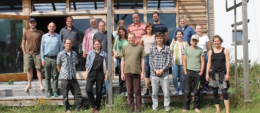 Die Auftaktveranstaltung im Ökodorf Sieben Linden versammelte mehr als 20 Akteure aus den Bereichen Landwirtschaft, Beratung, Forschung und Verwaltung, darunter auch Vertreter des Agrar- und Umweltministeriums Sachsen-Anhalt (Abb. 4). Diskutiert wurden Chancen und Herausforderungen der agroforstlichen Bewirtschaftung – etwa hohe Investitionskosten, unklare Rechtslagen und fehlende Förderanreize. Interviews mit Betrieben, die bereits Agroforstsysteme betreiben, verdeutlichten die große Bandbreite möglicher Umsetzungsmodelle. Im Ergebnis zeigte sich, dass die Agroforstwirtschaft klare ökologische Stärken besitzt, ihre Etablierung in der Praxis jedoch auf gezielten Wissenstransfer, verlässliche Vermarktungsstrukturen und -strategien sowie unterstützende politische Rahmenbedingungen angewiesen ist. Eine Besichtigung eines der ältesten Agroforstsysteme des Landes mit vielfältigen Obst-, Beeren- und Gemüsekulturen inmitten einer waldgartenähnlichen Parkstruktur rundete den Workshop eindrucksvoll ab.