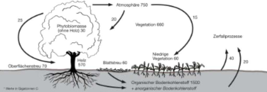 - dass der Gehölzschnitt bei Hecken als nachwachsender Energierohstoff genutzt wird, sich unter den Gehölzen Humus anreichert und damit CO2 im Boden gebunden wird und
