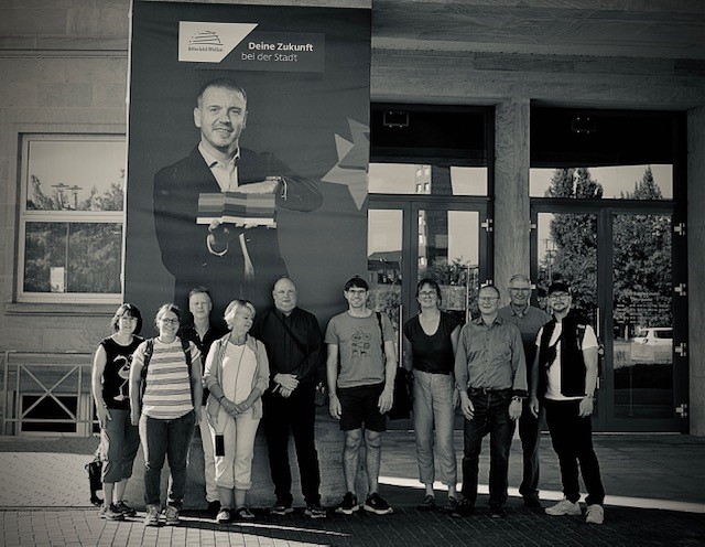 Um 09:00 Uhr traf sich die Gruppe am Bahnhof Bitterfeld. Begrüßt durch Oberbürgermeister Armin Schenk startete die Tour mit einer Fahrt zum Rathaus Wolfen. Gemeinsam unterwegs waren Hendrik Lange (Die Linke), Cornelia Lüddemann (Bündnis 90/ Grüne), Juliane Kleemann (SPD), die Pfarrerin Anna Mittermayer und ihr Kollege Martin Kabbitsch. Dazu noch Vertreter*innen der SPD, der CDU und der Zivilgesellschaft in Bitterfeld-Wolfen.