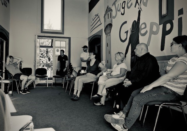 Nach dem Besuch im Rathaus fuhren wir in Begleitung des Oberbürgermeisters nach Greppin in der Jugendclub der AWO (wo er uns für andere Termine verlassen musste) und tauschten uns nach einer Besichtigung mit den Jugendlichen und dem hauptamtlichen Mitarbeiter über die Situation vor Ort aus. Dabei wurde einmal mehr deutlich, wie wichtig eine kontinuierliche Jugendarbeit mit Personal und räumlichen Möglichkeiten ist. Als Probleme wurden neben dem baulichen Zustand vor allem die Unzuverlässigkeit des ÖPNV markiert. Diese Probleme sind nicht neu, aber nach dem Gefühl vor Ort werden sie nicht angegangen. Im Gespräch wurde auch deutlich, dass Angebote der politischen Bildung wichtig wären, weil diese nach Aussage der Jugendlichen auch im schulischen Kontext zu kurz kämen. Den Jugendklub selbst benannten die Jugendlichen als ein zweites Zuhause. Die Angebote von den wöchentlichen Treffs bis zu gemeinsamen Fahrten empfanden sie als wesentliche Bereicherung. Auch dabei war die Frage nach dem finanziellen Rahmen im Raum, in dem die Arbeit stattfindet. Das Gebäude benötigt einige bauliche Maßnahmen. Auch für die inhaltlich Arbeit und die Ausgestaltung sind die Mittel chronisch knapp. Aber das, was dort für ein gutes Miteinander und für Demokratiebildung geleistet werden kann und wird, ist sehr wesentlich gerade in Zeiten, in denen Populismus und Demokratieverachtung so erfolgreich scheinen.